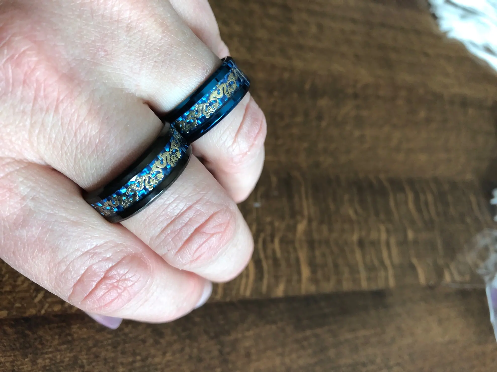 Товар соответствует описанию, но я заказал чёрное , а мне прислали синее. Шло долго, видимо из-за карантина. В любом случае носить буду, кольцо очень красивое