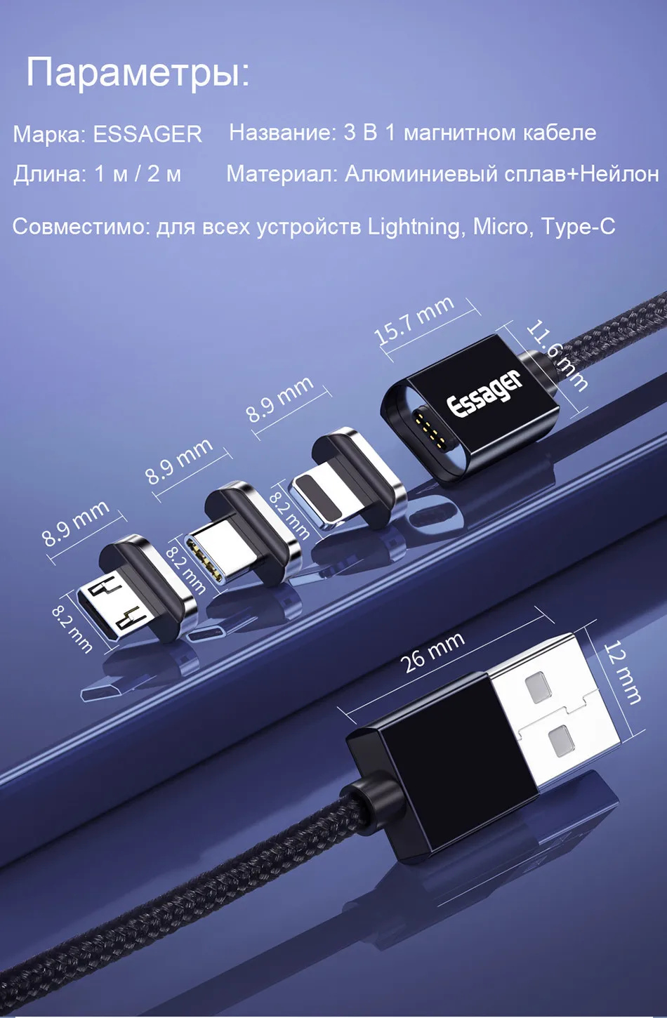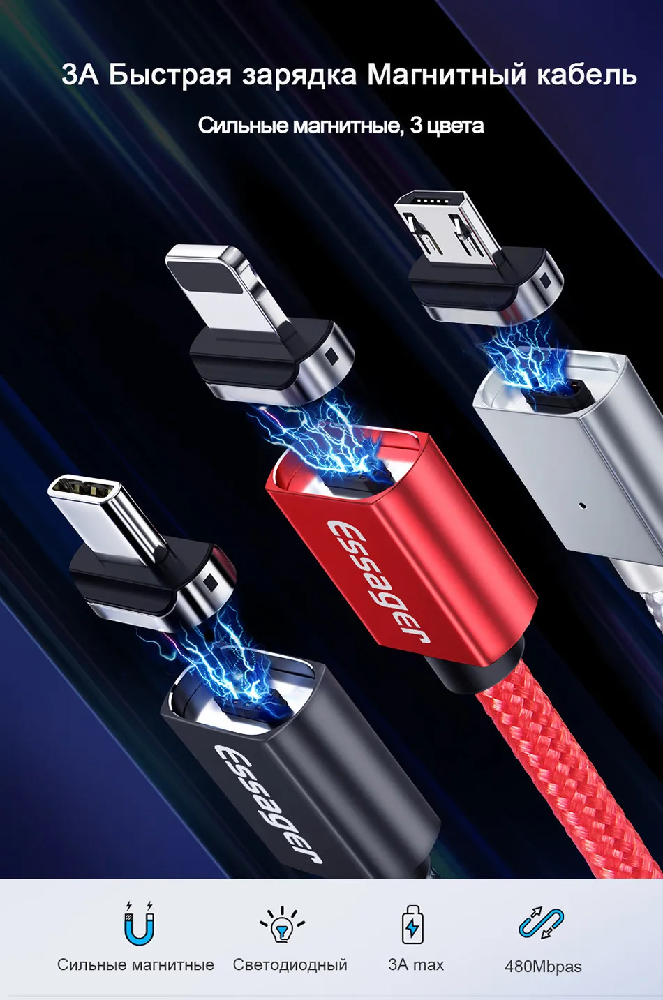 Essager магнитная зарядка usb кабель быстрая зарядка для айфона самсунг переходник кабель micro usb type c провод для шнур зарядки