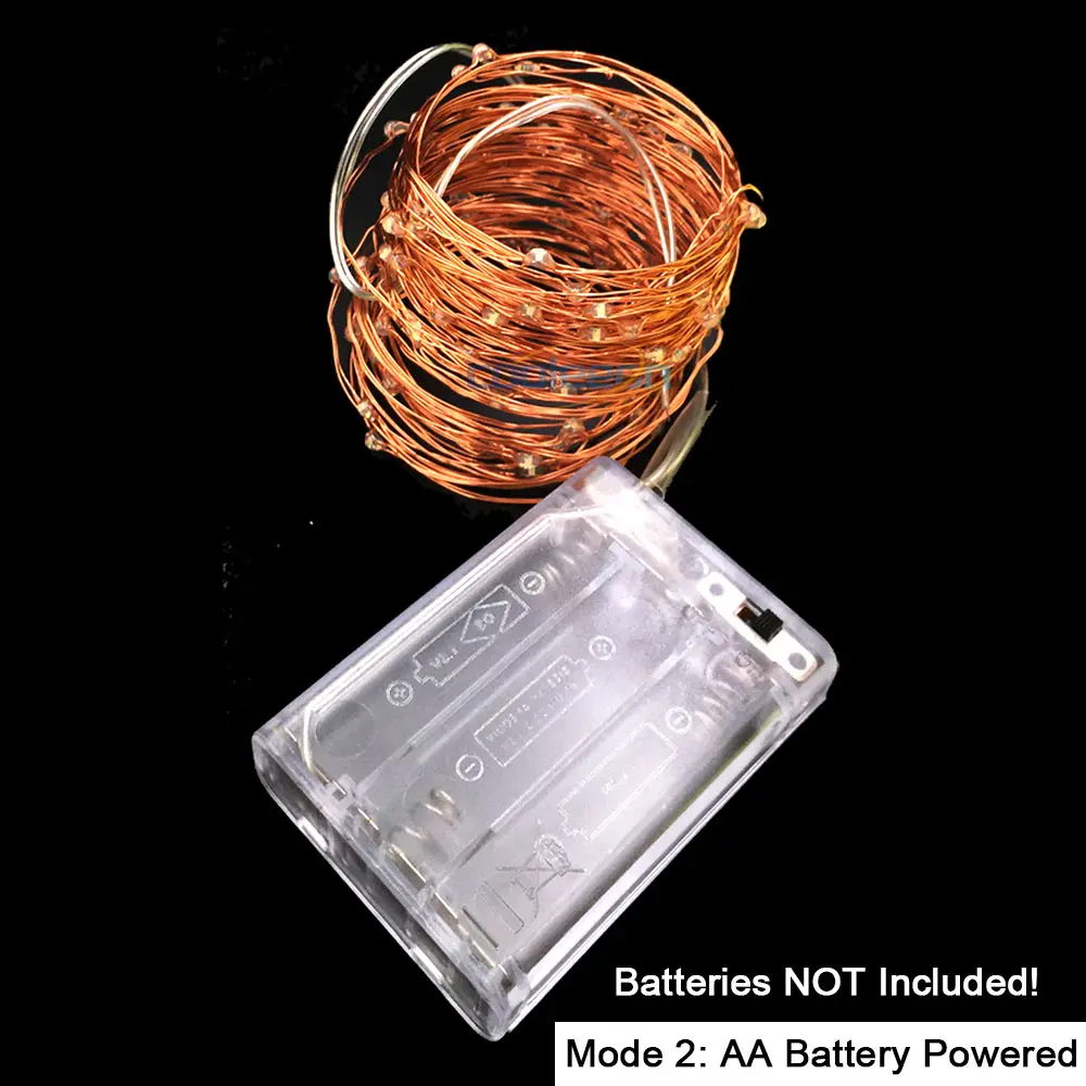 Есть три режима питания для Светодиодный медный провод, пожалуйста, внимательно выберите тот, который вы хотите (кнопочный аккумулятор/батарея AA/USB)