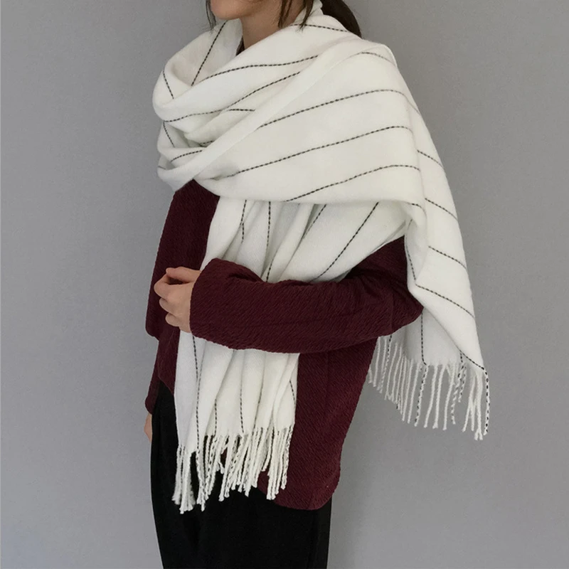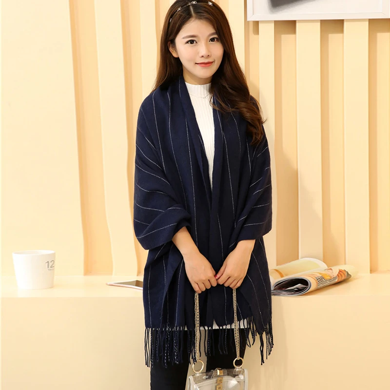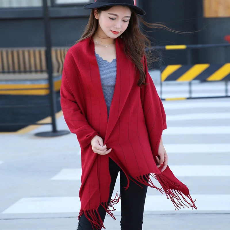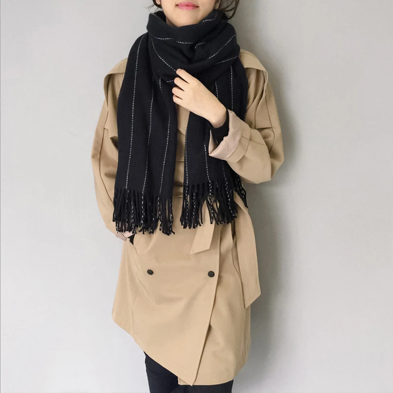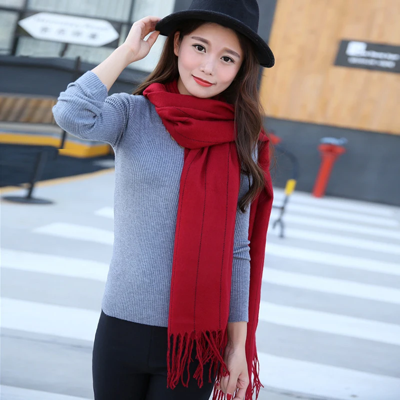 Mingjiebihuo новый зимний Корейский модный шерстяной однотонный шарф ручной работы утепленный мужской и женский вязаный шарф с кисточками