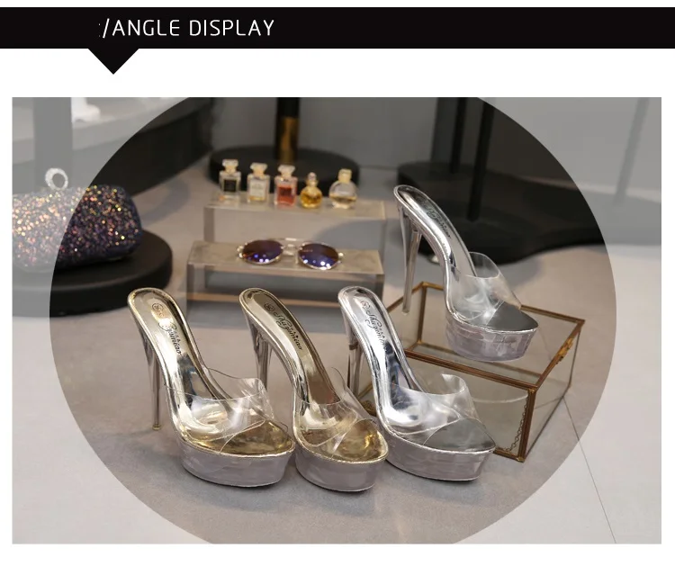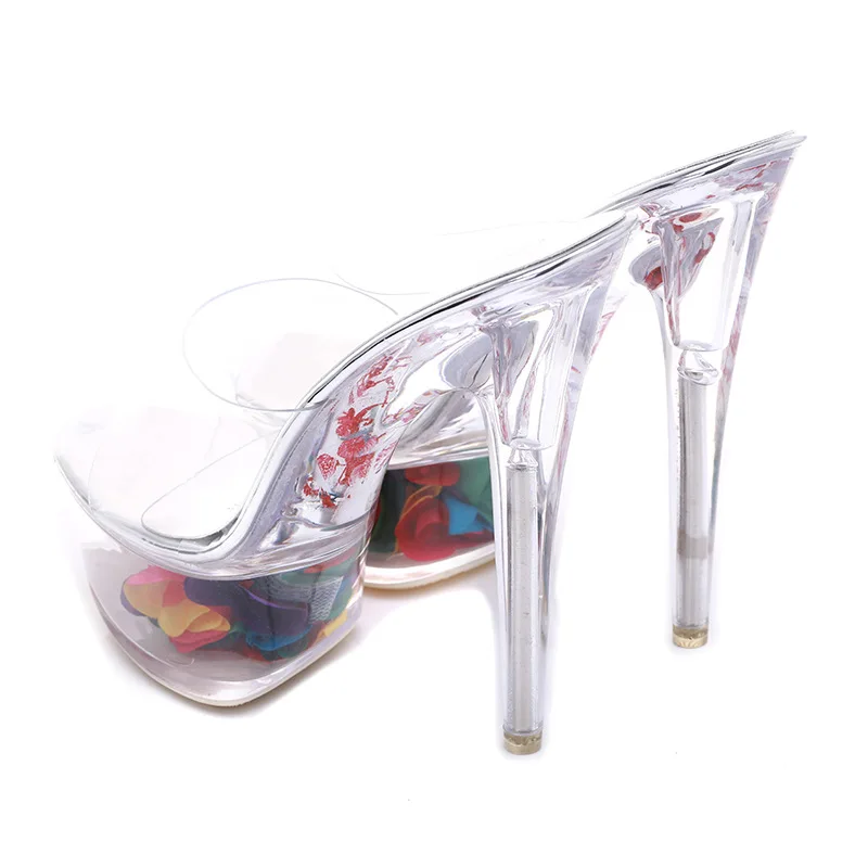 Женские танцевальные сандалии со стальными трубками, тапочки на высоком каблуке 15 см с кристаллами, прозрачные Водонепроницаемые Красивые тапочки, 2019