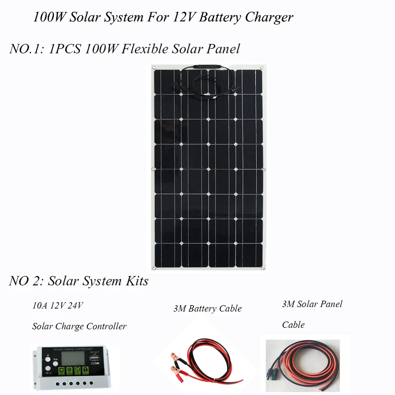 100W 200W Гибкая Панели солнечные 10A/20A блок управления установкой на солнечной батарее модуль для автомобиля на колесах Лодка Крыши дома кемпинга 12V 24V Солнечный Батарея зарядное устройство