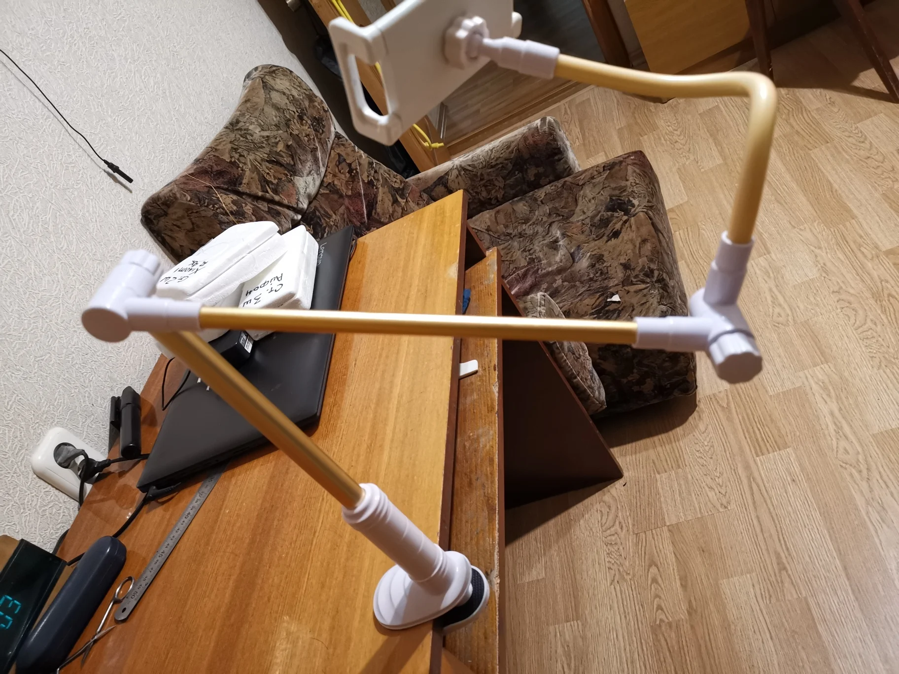 В общем оченка на хорошо, но стоит сказать что хотел разместить на нем планшет над макбуком, но когда закрепил 10.5 ipad pro понял что он прогибается настолько и крепление наиболее подойдет для чего то поменьше... Брал тот что с 2я коленами и одной изгибающейся частью. Прогибался под весом прилично в сочленениях, изменение высоты составило более 10 см... Для телефона или какого нибудь небольшого планшета наверное подойдет...