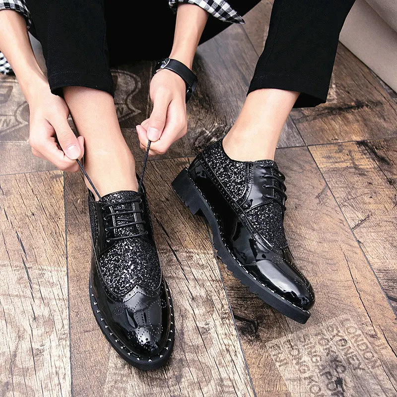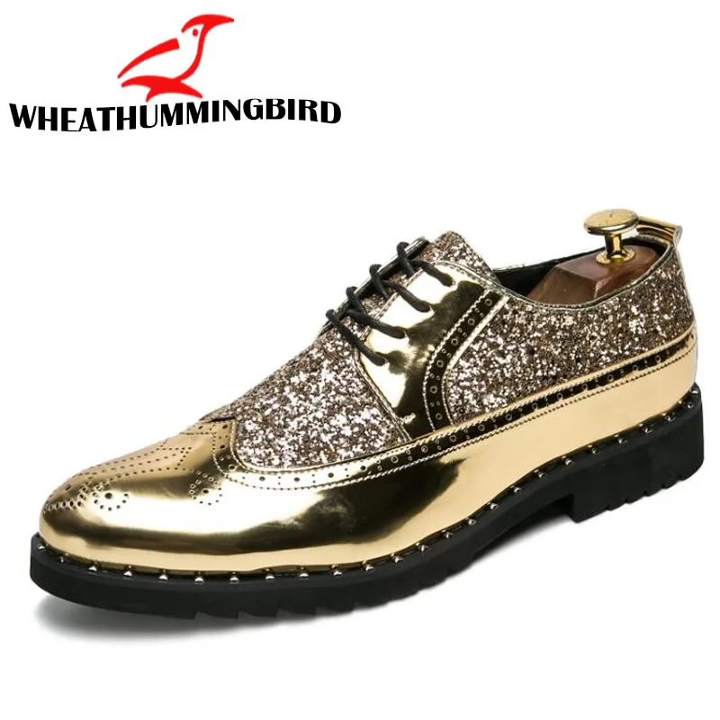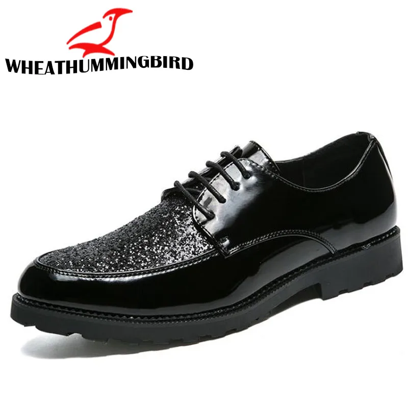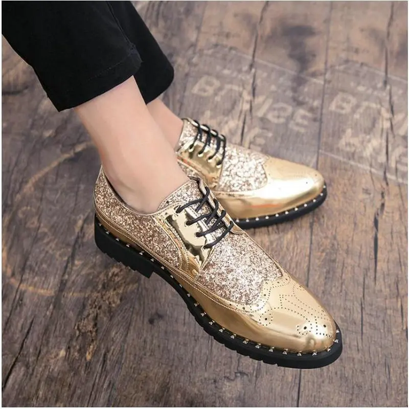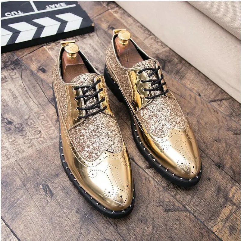 Модная мужская обувь, кожаные туфли, мужские классические туфли, свадебные деловые дизайнерские черные и золотые оксфорды, украшенные блестками