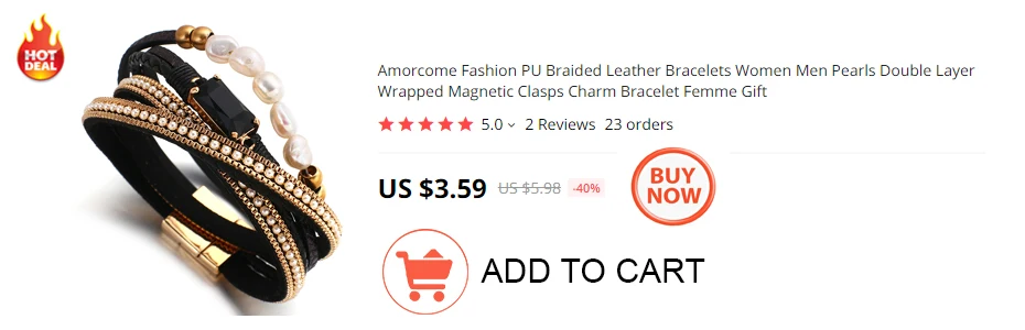 Женский Многослойный кожаный браслет Amorcome, трендовый дизайн, 4 цвета, браслеты-обручи с бусинами, с двойной застежкой, ювелирные изделия, 2020