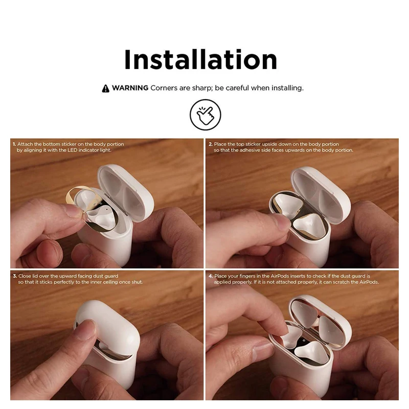 Металлический пылезащитный чехол для Apple AirPods, зарядный чехол, аксессуары, защита от царапин, наклейка, кожа для Air Pods 1 2, чехол, наклейки