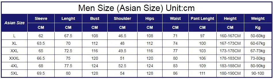 Посылка дошла быстро, дней 20 до Омска. На мои 177 см. 96 кг размер 4 XL только в пору, запас нет. К куртке претензий нет, только узковато горло, если застегнуть до конца молнию. А штаны со швейным браком пришли. На одной штанине перекручена подкладка была, пришлось нести в ателье. На мой взгляд карманы на брюках неудачно вшиты, без замка, но это не критично. Костюм за свои деньги, лёгкий, всего около 800 гр.