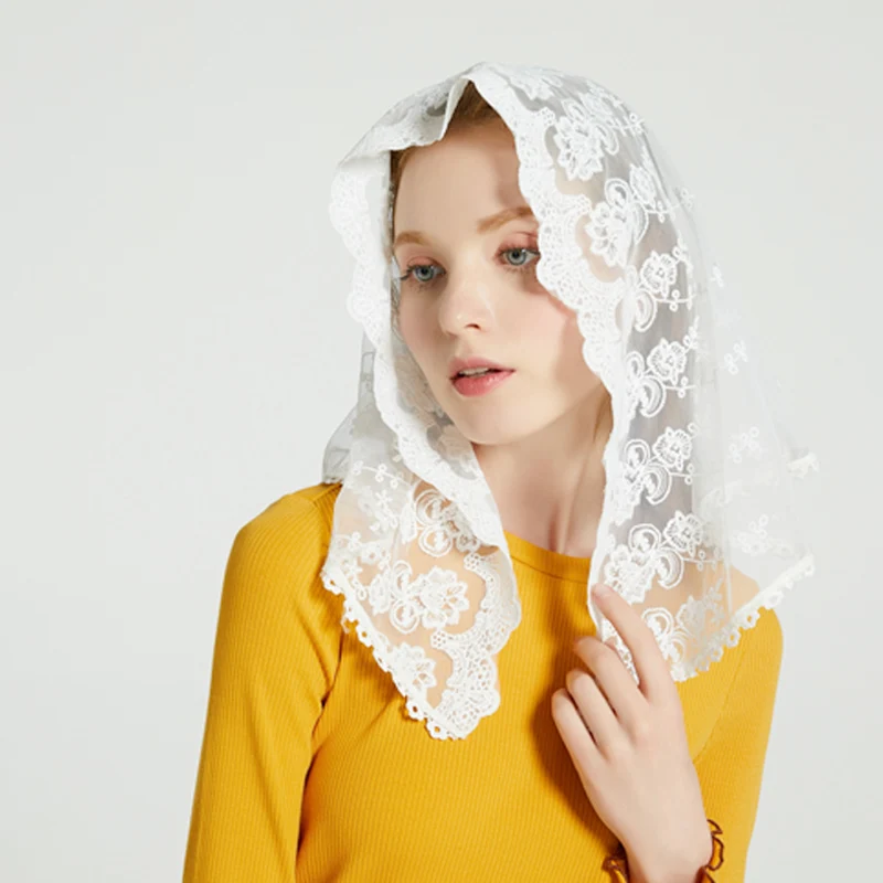Женский модный кружевной шарфик d-образной формы, Соборная Фата мантилия, христианский головной убор для церкви, молитвы, кружевной зубчатый шарф