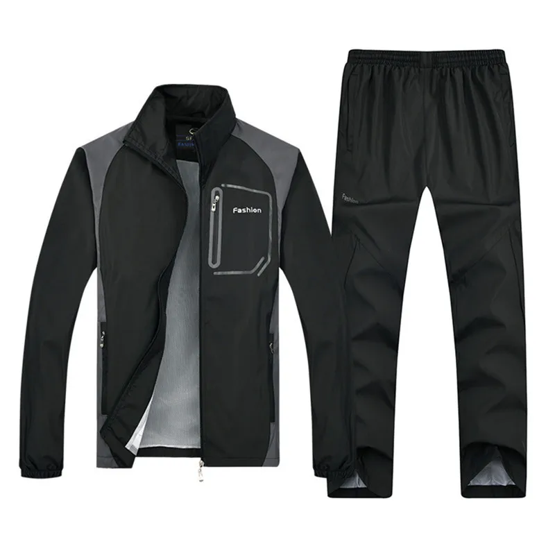Новый Для мужчин набор Демисезонный Для мужчин спортивная комплект из 2 частей спортивный костюм куртка + брюки костюм мужской Костюмы спортивный костюм Размеры L-5XL