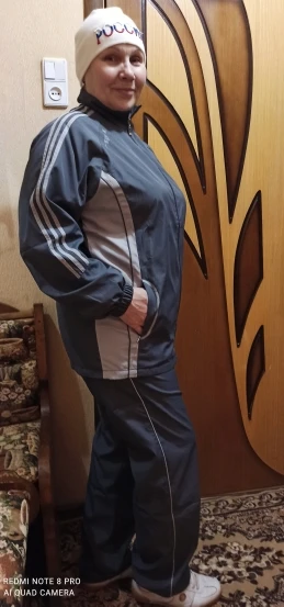 Отличный костюм!!! Качество ткани и пошива, а также фасон-на высоте. На свои параметры 125-98-120, рост 170 взяла 4XL- сел идеально! Подклад на куртке и брюках- дышащая сетка, чувствуешь себя комфортно. В куртке есть внутренний просторный карман. Карманы на брюках без замков. Длина брюк свободно находит на задники кроссовок, рукава с запасом, при упражнениях не задираются. Пришёл на почту в Подольск за три недели. Очень довольна! Закажу ещё и мужу- ему очень понравился костюм. Спасибо продавцу и производителю! Успешных продаж в новом году!
