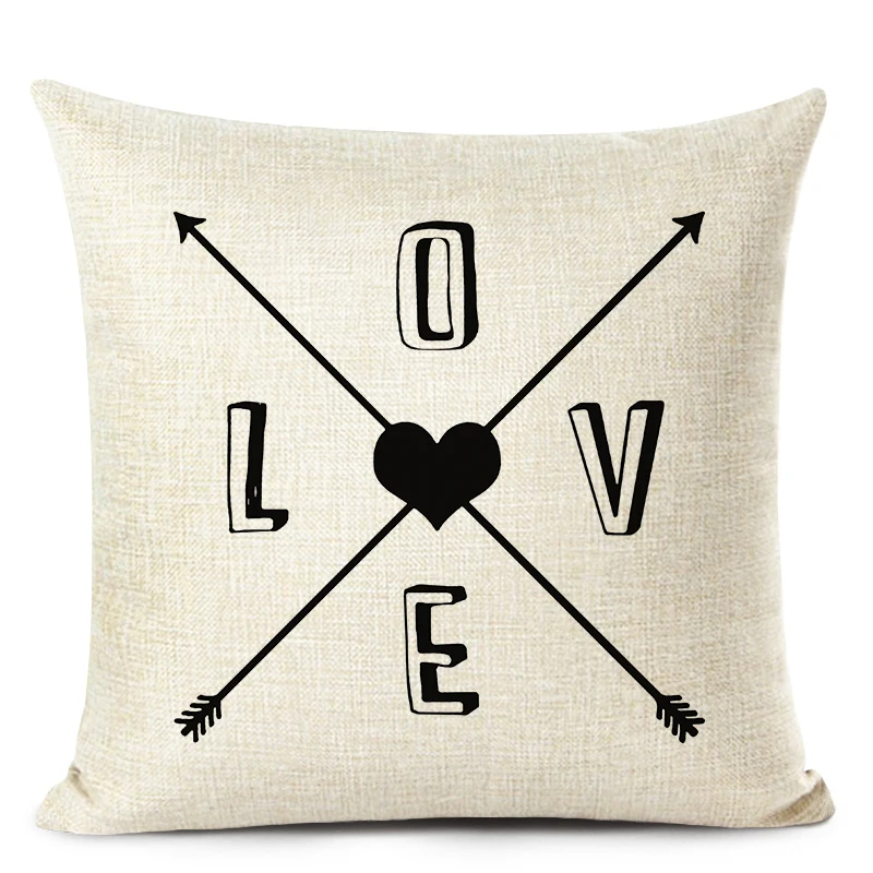 С надписью Love для дома подушки Чехлы хлопковый льняной черный, бе...