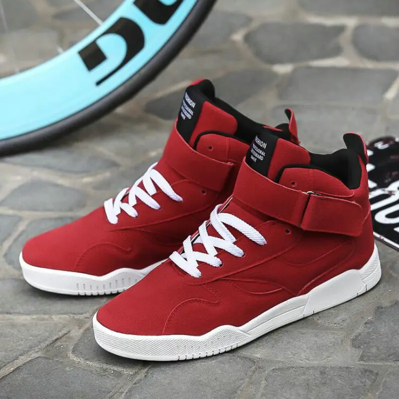 Мужские холщовые кроссовки для тренировок, Повседневные высокие спортивные ботильоны со шнуровкой, черные, красные, для ходьбы