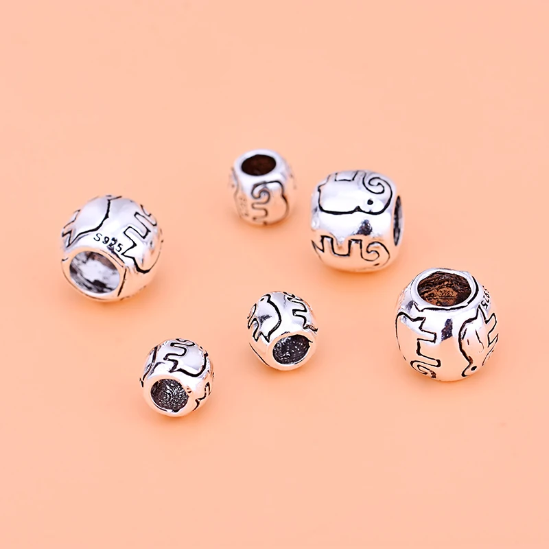 Бусины россыпью из серебра S925 пробы, овальные бусины в виде слона, бусины ручной работы Ювелирная цепочка, бусины из материала, аксессуары для браслетов