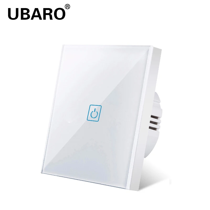 Настенный сенсорный светильник ключатель света UBARO, стандарт ЕСВеликобритании, панель из закаленного стекла, включениевыключение, электрический датчик, ручная кнопка, светодиодный индикатор, 220 В переменного тока
