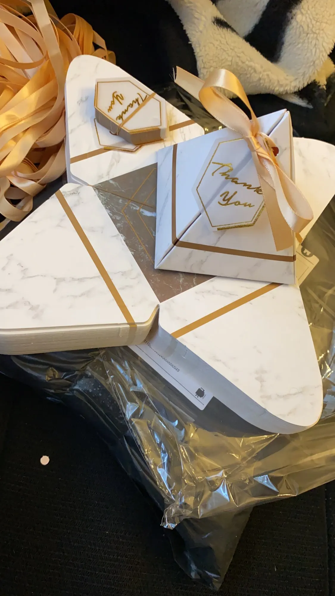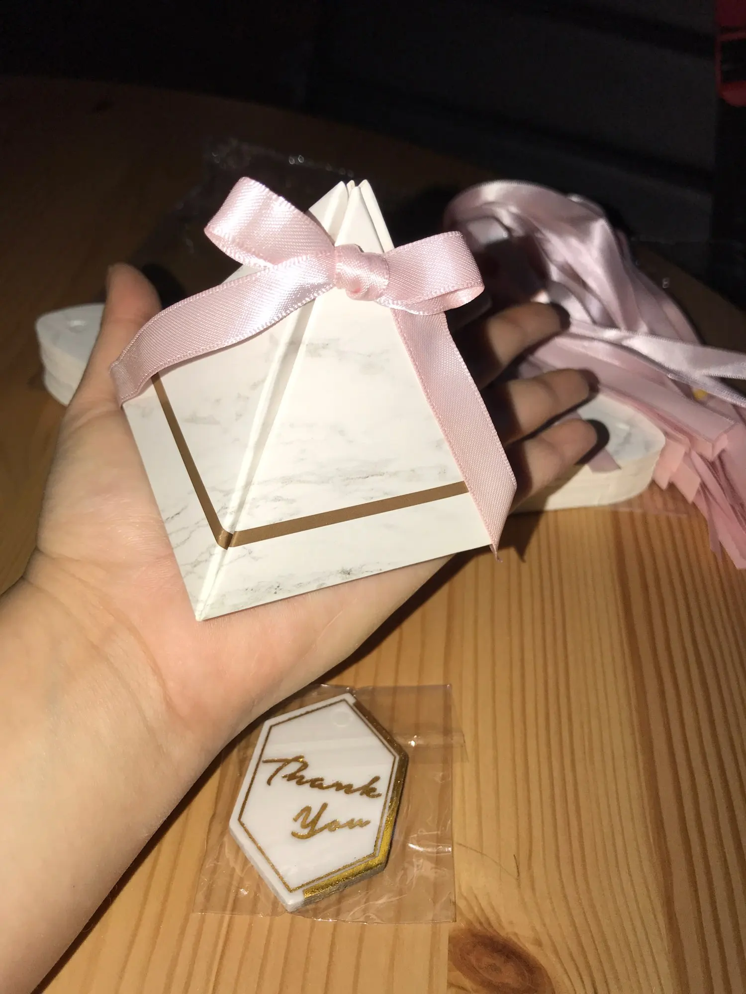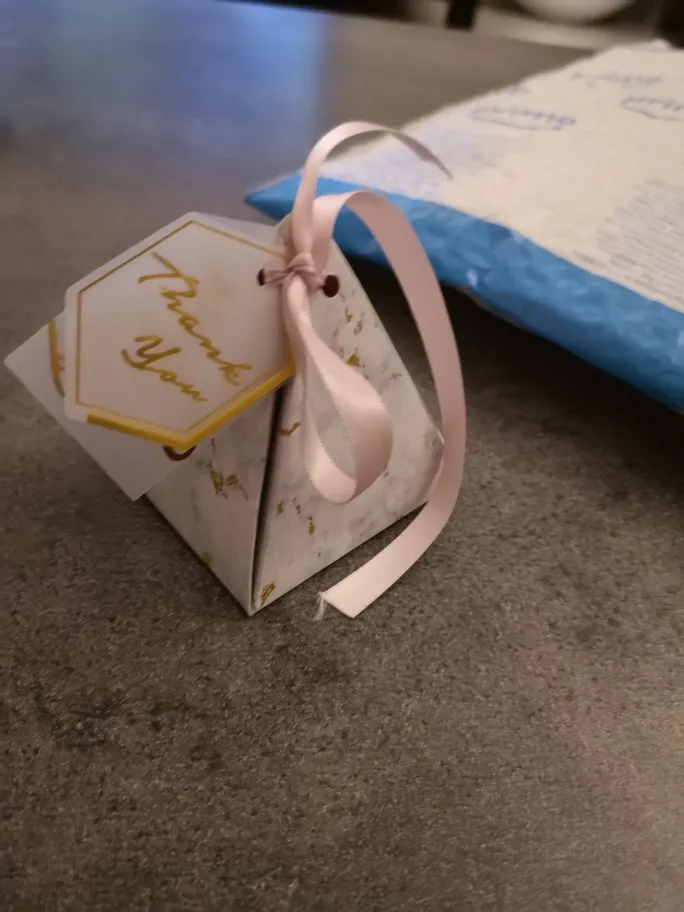 коробочки пришли примерно за 2 месяца. качество хорошее, в комплекте картонка с надписью thank you и ленточки. отличный вариант для мини-подарка