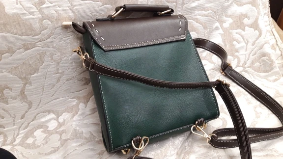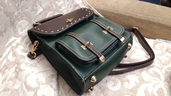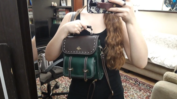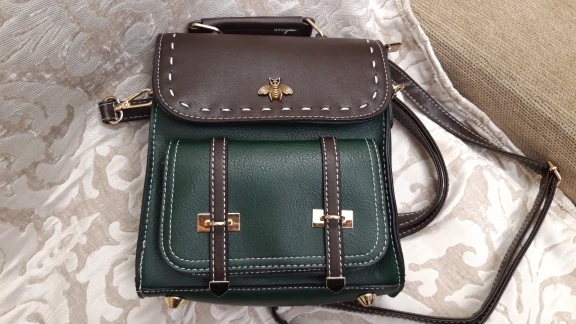 Очень хороший рюкзак, выглядит великолепно, качество отличное, материал мягкий, рюкзак хорошо держит форму и имеет вес. Цвет зеленого ближе к болотному, чем к бирюзовому, что мне очень нравится и очень красиво сочетается с одеждой. Размер не большой, на кошелек, телефон и небольшую бутылку воды, еще может поместиться тетрадь формата а5, но не больше. Продавец быстро ответил на все вопросы. Пришло в Москву за 2 недели. Очень рекомендую!