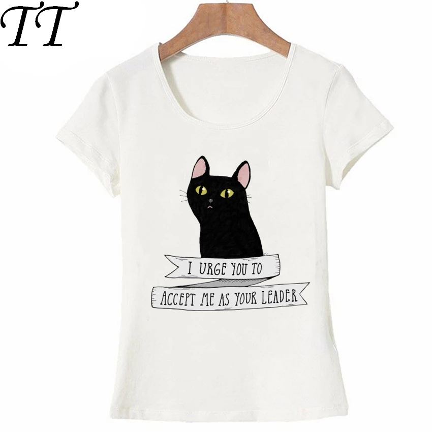 Новинка, футболка с принтом Black cat crossing, летняя модная женская футболка, топы с забавным принтом животных, Женские повседневные футболки