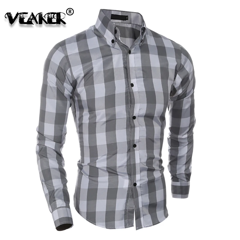Рубашка мужская в клетку, с отложным воротником, с длинными рукавами, в деловом стиле, 4 цвета, 2XL, 2020