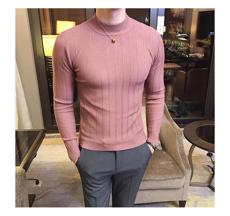 Мужской облегающий свитер, жаккардовый пуловер с высоким воротником и длинными рукавами, трикотажный свитер на весну, 2019