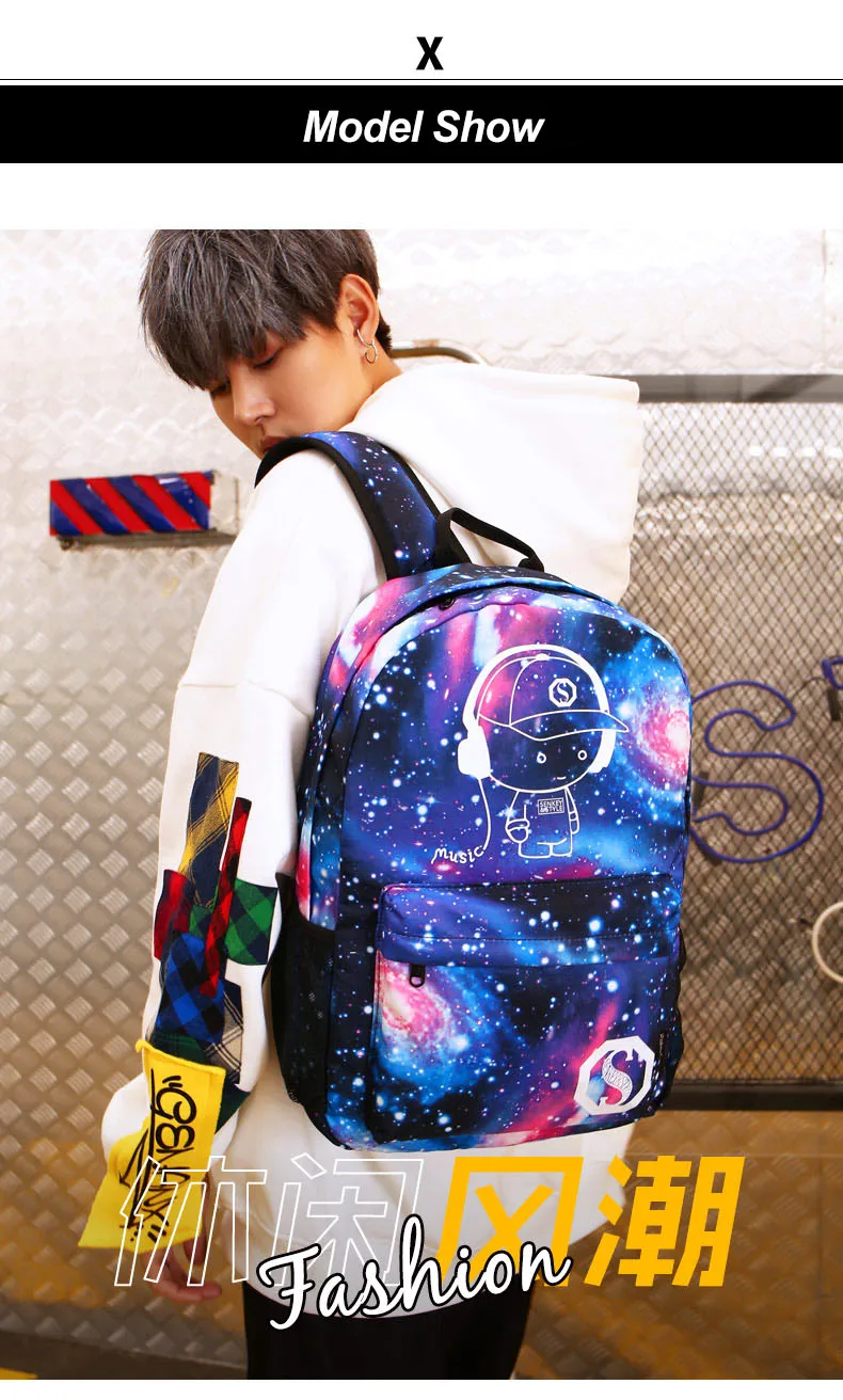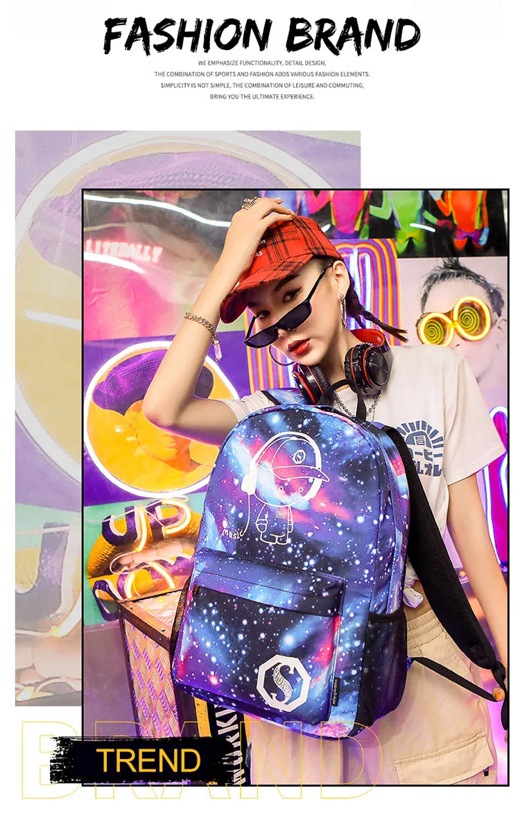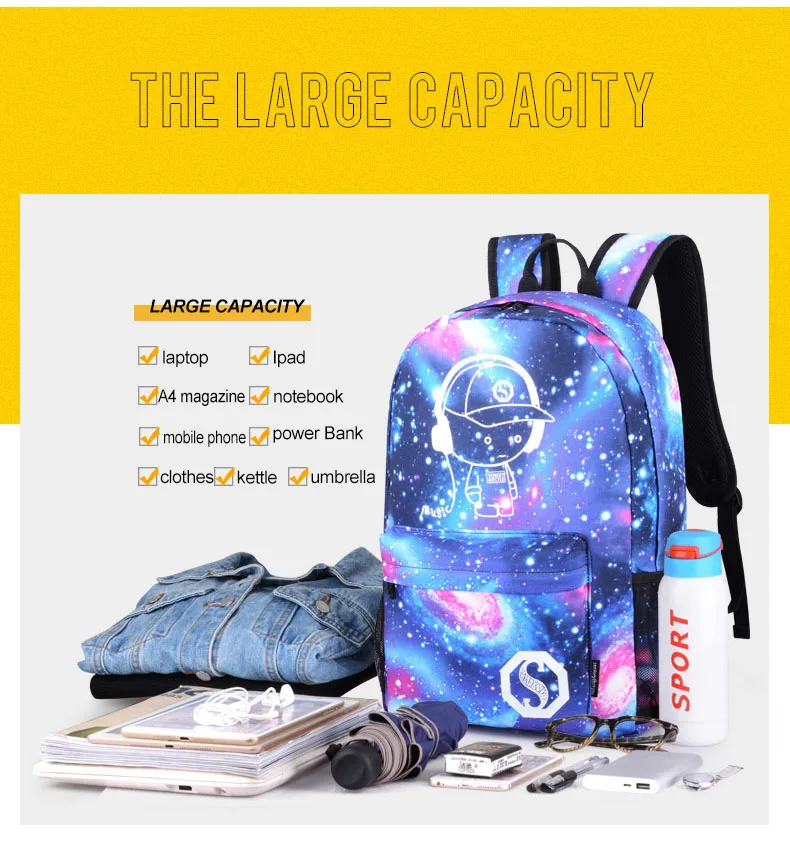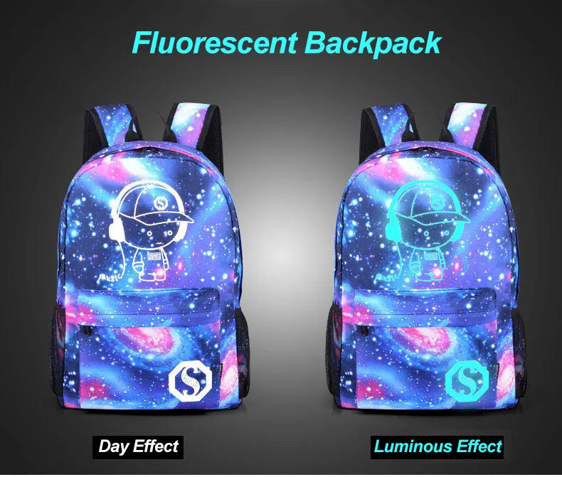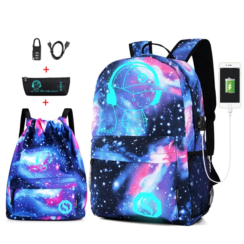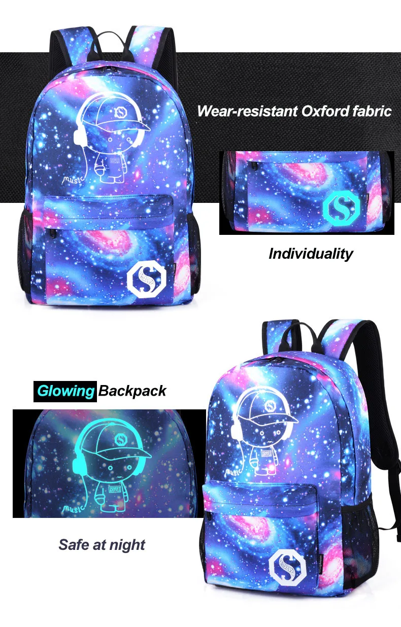 Рюкзак-Антивор для девочек, светящийся, школьный, с USB-портом для зарядки и замком, школьные ранцы для мальчиков