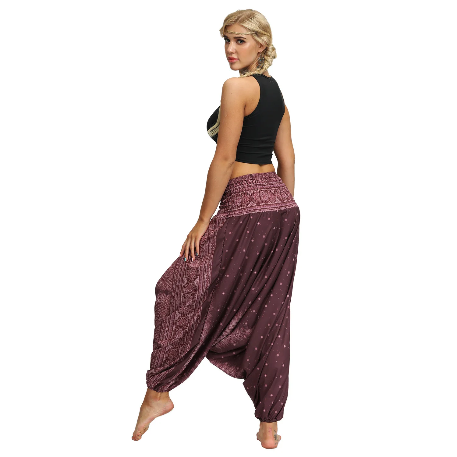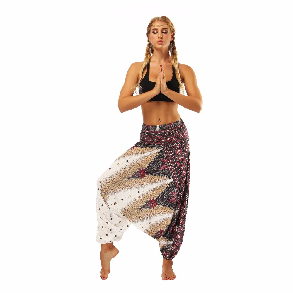 Штаны женские для йоги, свободные удобные мягкие шаровары в богемном стиле, с разноцветным геометрическим принтом, широкие штанины, брюки одного размера