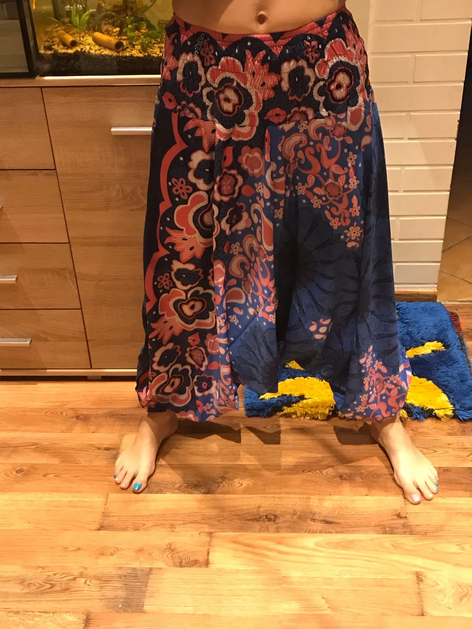 Женские Алладины на фото выглядят больше алые в реальности же цвет немного краснее. Размеру соответствует. Ткань без запаха и лишних ниток. Резинка в поясе упругая не слетает. Швы ровные и сшито аккуратно но ткань немного шуршит, хотя это мелочь но просто мне есть с чем сравнить. У меня эти шаровары не первые и есть более лучшего качества. Цена конечно завышена. По мне так рублей 600 им красная цена...С продавцом не общалась. Трек отслеживался. До Новосибирска шли 1,5 месяца.