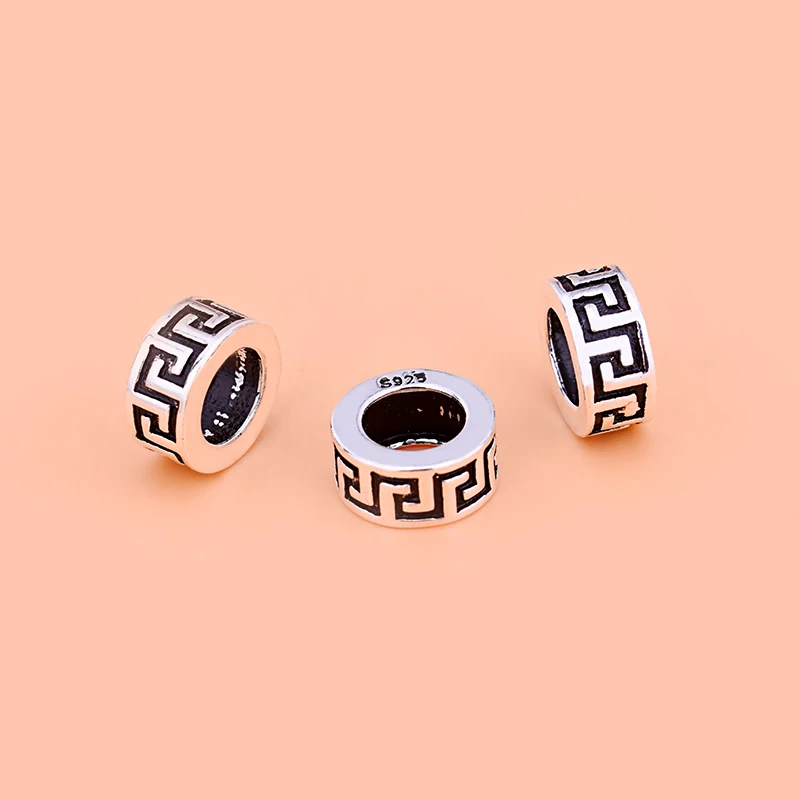 925 пробы тайские серебряные бусины, бусины с узором сзади, плоские бусины, аксессуары, материалы для ювелирных изделий ручной работы, аксессуары для ювелирных изделий