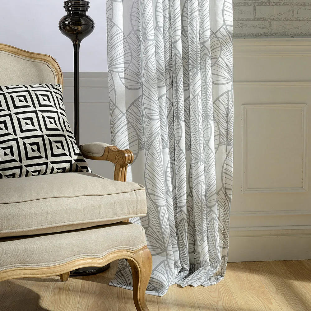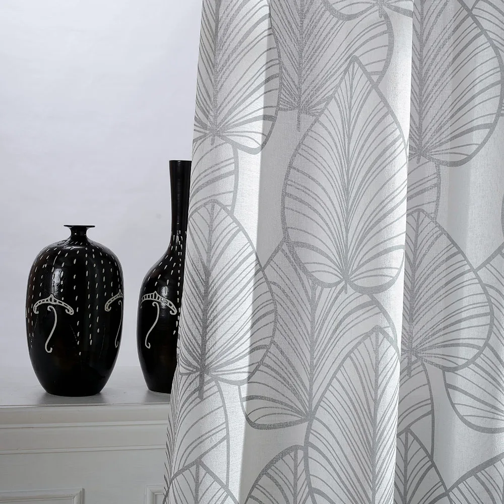 Современные серые листья тюлевые шторы с рисунком для гостиной, кухни, окна на заказ в европейском стиле