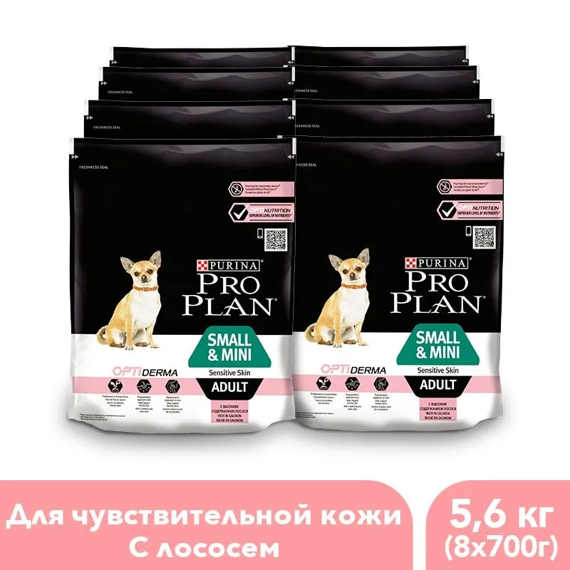 Сухой корм Pro Plan для взрослых собак мелких и карликовых пород с чувствительной кожей с комплексом OPTIDERMA с лососем и рисом, 5.6 кг.