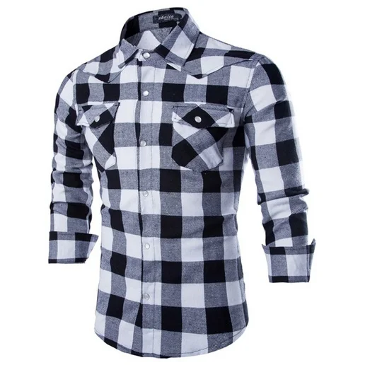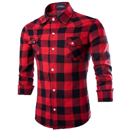 Мужская рубашка geek из чистого хлопка в клетку с длинным рукавом