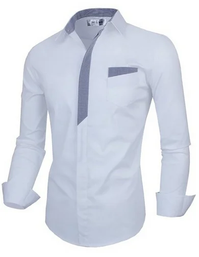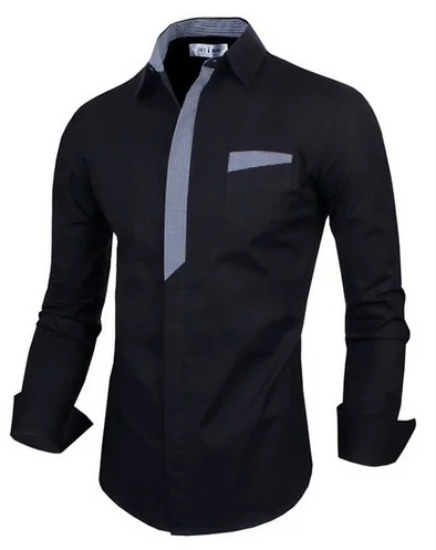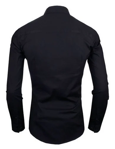Мужская приталенная рубашка из чистого хлопка с длинными рукавами и ложным карманом