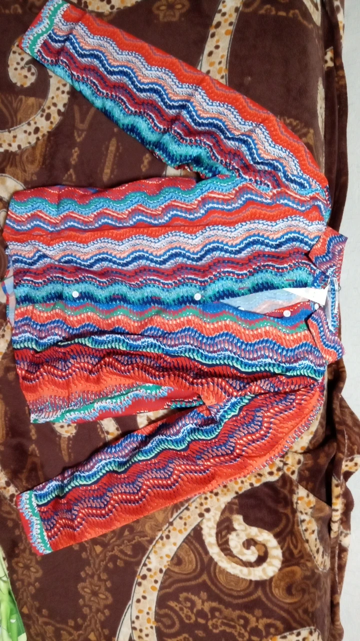 Неплохая рубашка, пошито качественно, выглядит симпатично. Конечно, это голая синтетика, но никто и не ожидал натуральных материалов, главное, что к телу нормально. Хорошо, что она удлиненная, а то я боялась, что получу очередную вещь, которая едва достанет до бедер, хотя лучше бы она была подлинней, но м так неплохо. На российский 48-50 село хорошо. Ну и цена приемлемая. Вобщем, покупкой довольна, продавцу спасибо! Посмотрим, как будет в носке