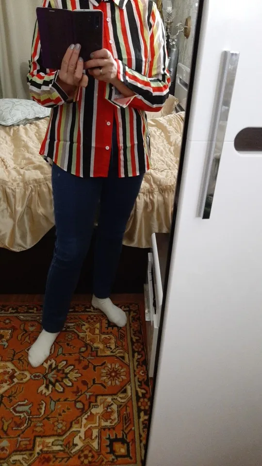 Продавцу, за быструю доставку и хорошее качество товара большое, спасибо. Заказывайте!!! Блузка отлично пошита и сидит хорошо. На рос. размер 38-40 свободно, как и хотелось. Рост 166 см - рукава нормально. Если рост больше то рукава будут коротки....