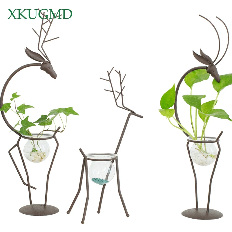 Ваза для цветов, стеклянная, с оленем, прозрачная