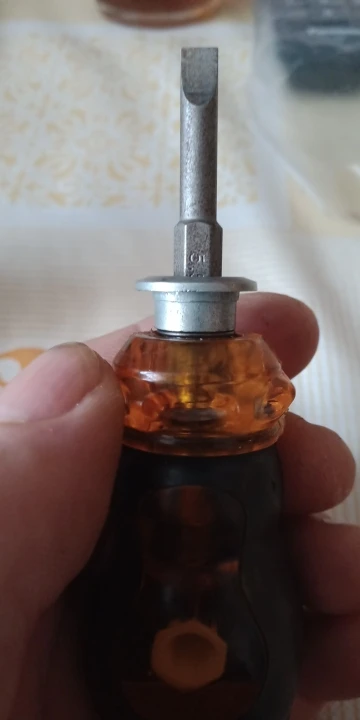 отверткой остался не доволен качество оставляет желать лучшего. при нажатии кнопки чтоб достать стержень отвертки выпали стопорные шарики и теперь отвертка не стопориться фото добавлю позже