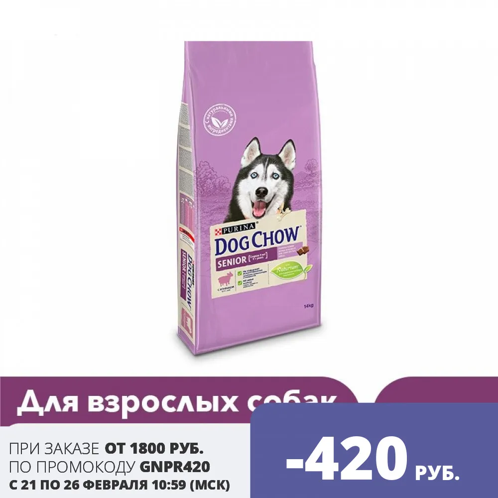 Сухой корм Dog Chow для взрослых собак старше 9 лет с ягненком, 14 кг