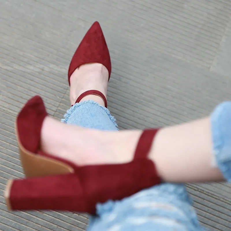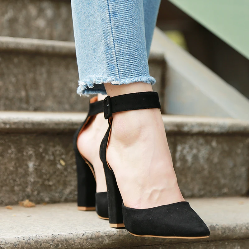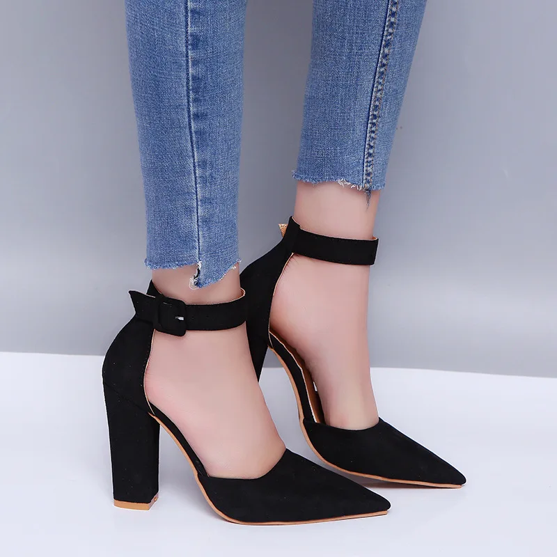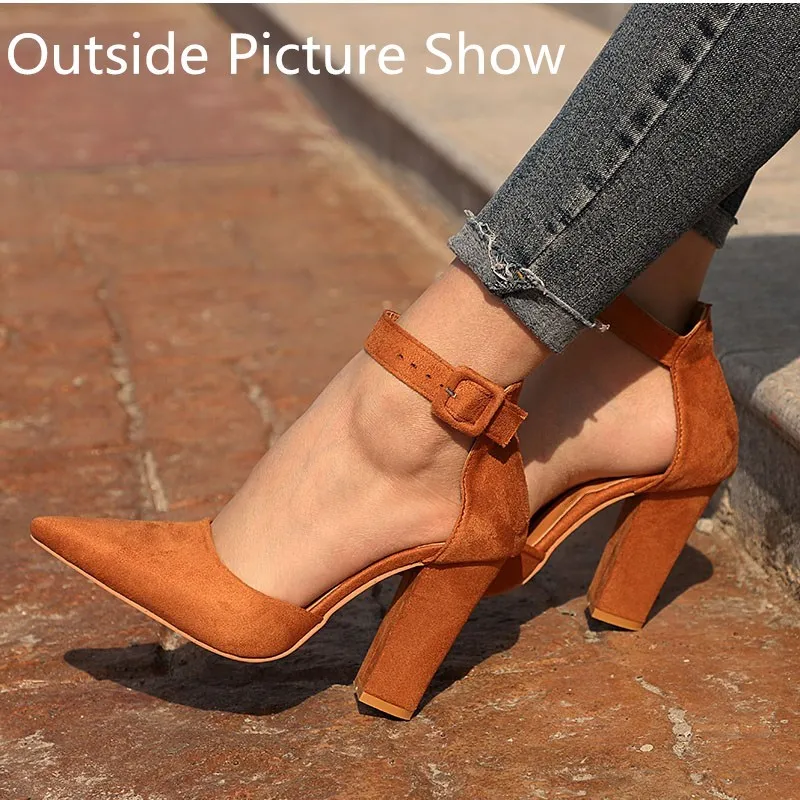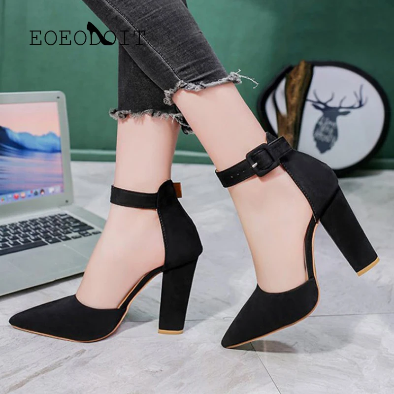 Туфли-лодочки женские EOEODOIT, на высоком каблуке, с острым носком, с ремешком на щиколотке, классические, удобные, для офивечерние, повседневные, сандалии на коротком каблуке
