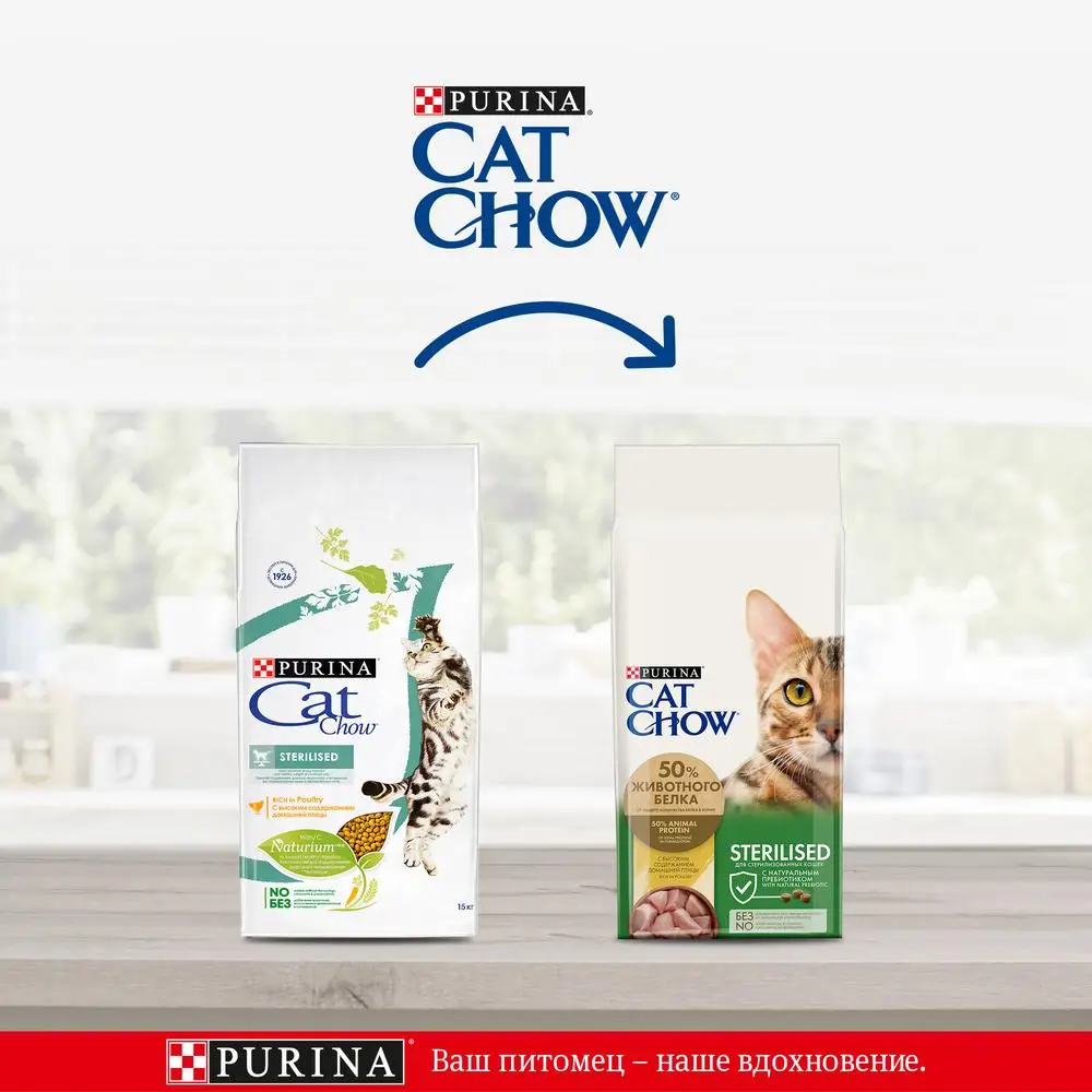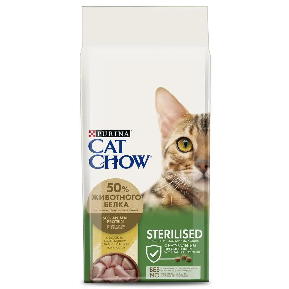 Корм для кошек Cat Chow, для взрослых стерилизованных кошек и кастрированных котов, с высоким содержанием домашней птицы, 15 кг