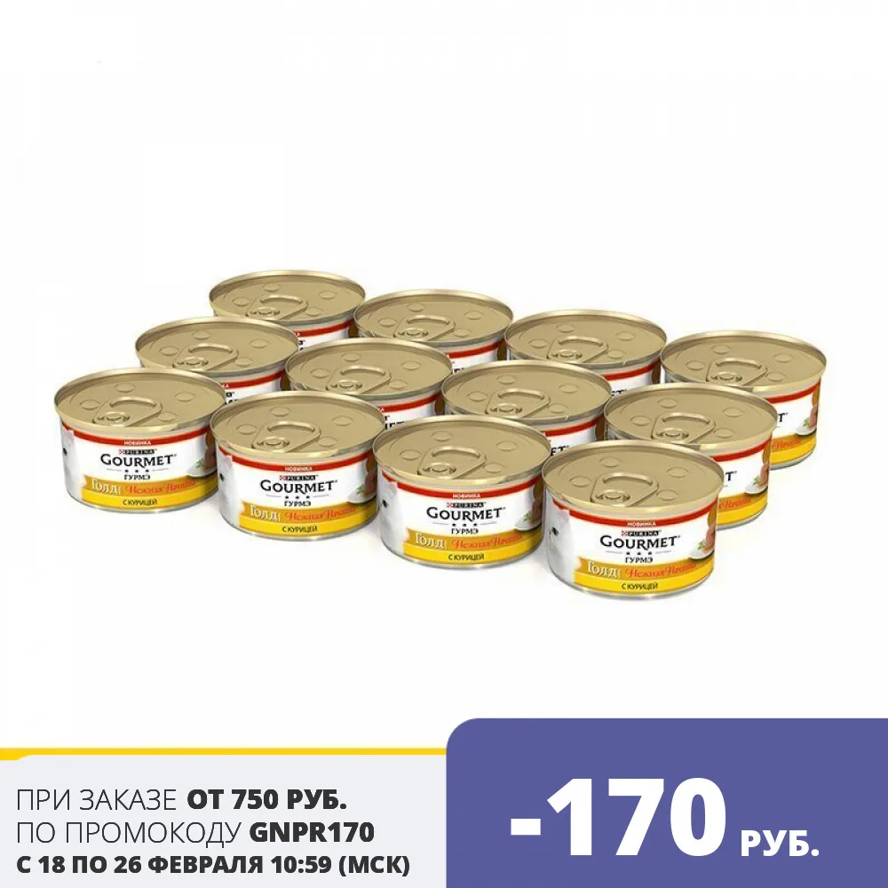 Влажный корм Gourmet Gold Нежная начинка для кошек с курицей, Банка, 12х85 г.