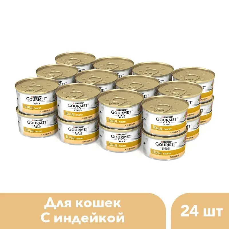 Влажный корм Gourmet Гурмэ Голд Паштет для кошек с индейкой, Банка, 24х85 г.