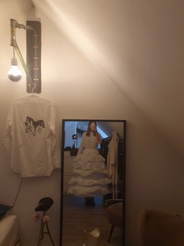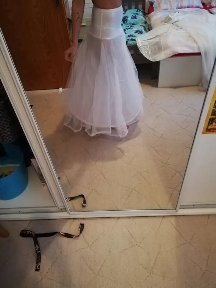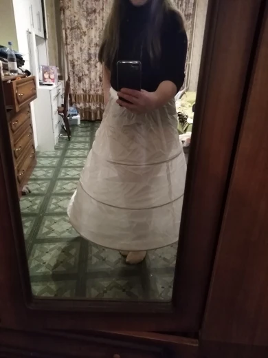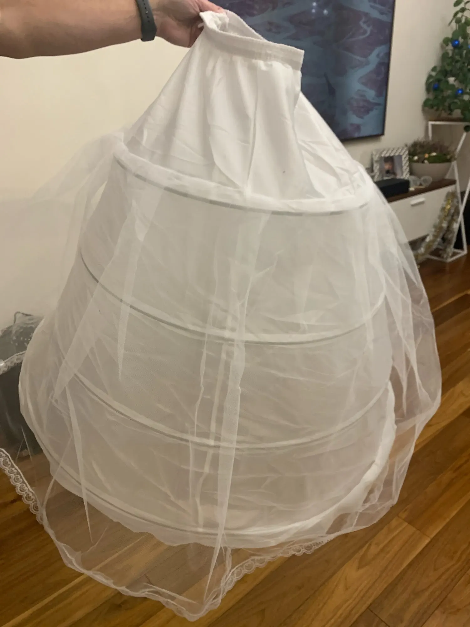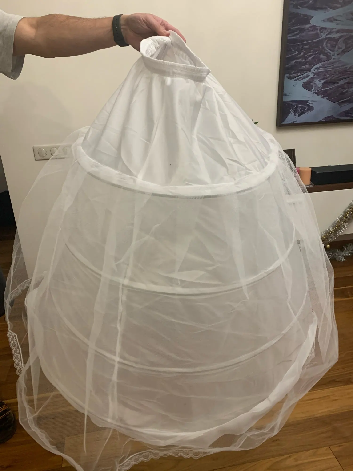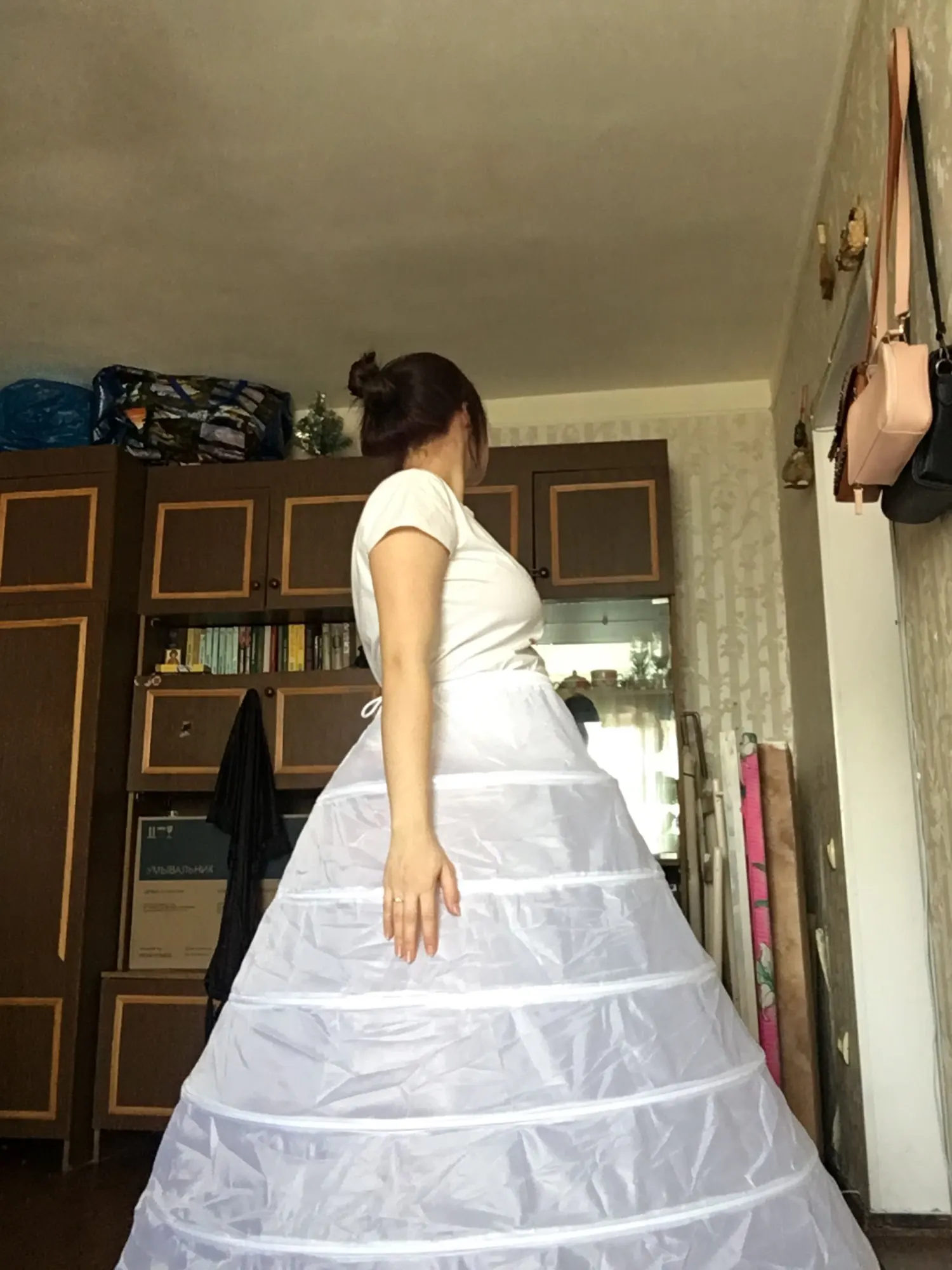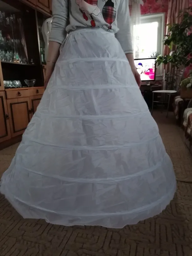 Выглядит потрясающе под моим свадебным платьем. Кринолин 7 немного шире, чем современные свадебные платья, но это то, что я хотел :) в тот же день я получил свадебное пальто с накидкой от также от Aliexpress. Очень доволен.