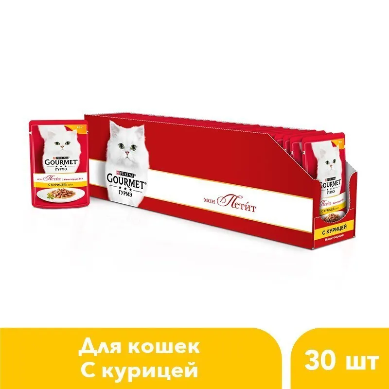 Корм для кошек Gourmet Mon Petit, с курицей, влажный, 30 паучей по 50 г.