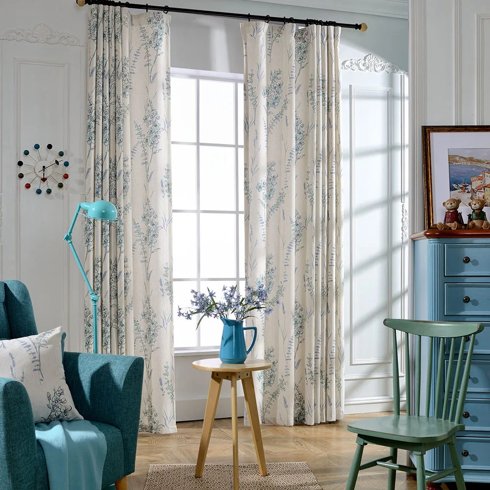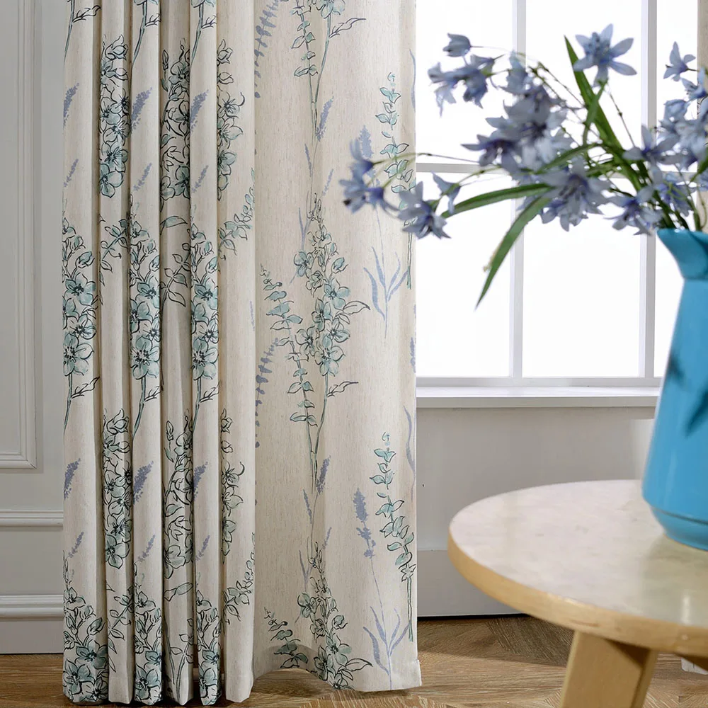 Затемняющие шторы с синими цветами, занавески на окна в европейском...