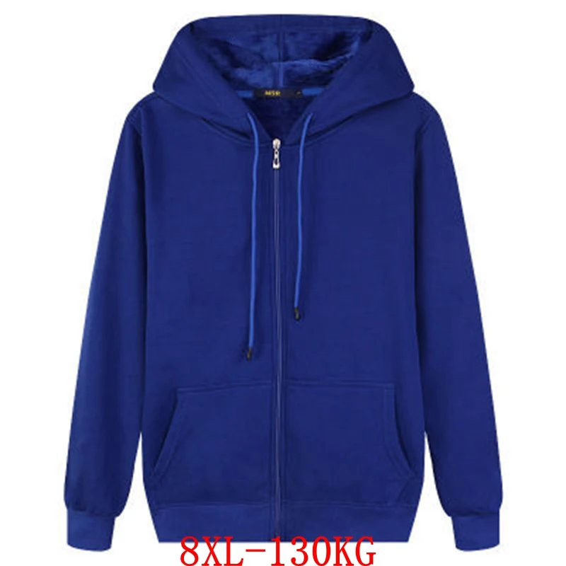 Свитшот мужской с капюшоном, толстая флисовая толстовка с длинным рукавом, на молнии, большие размеры 5XL 6XL 7XL 8XL, Черный Синий Серый, на осень и зиму