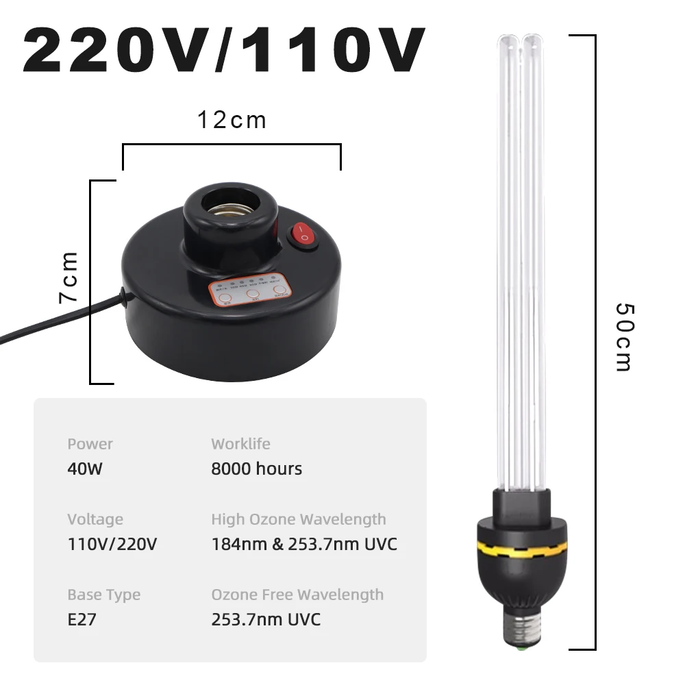 40 Вт УФ-лампа для дезинфекции озона 110 В 220 В, ультрафиолетовые лампы E27, трубка UVC бактерицидные огни, бытовой стерилизатор освещения