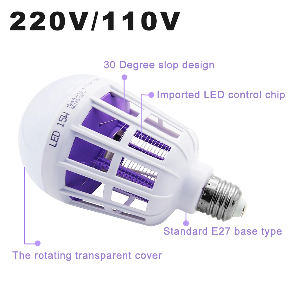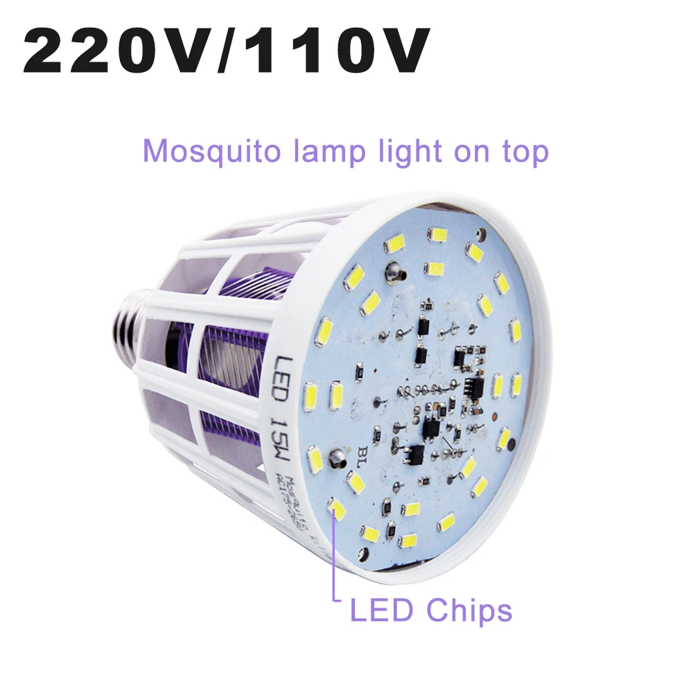 Лампа-убийца комаров E27, 110 В, 220 В, 15 Вт