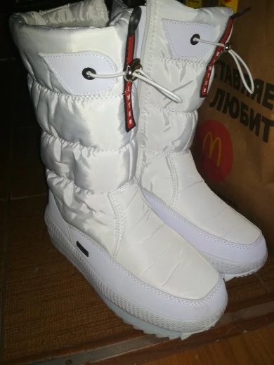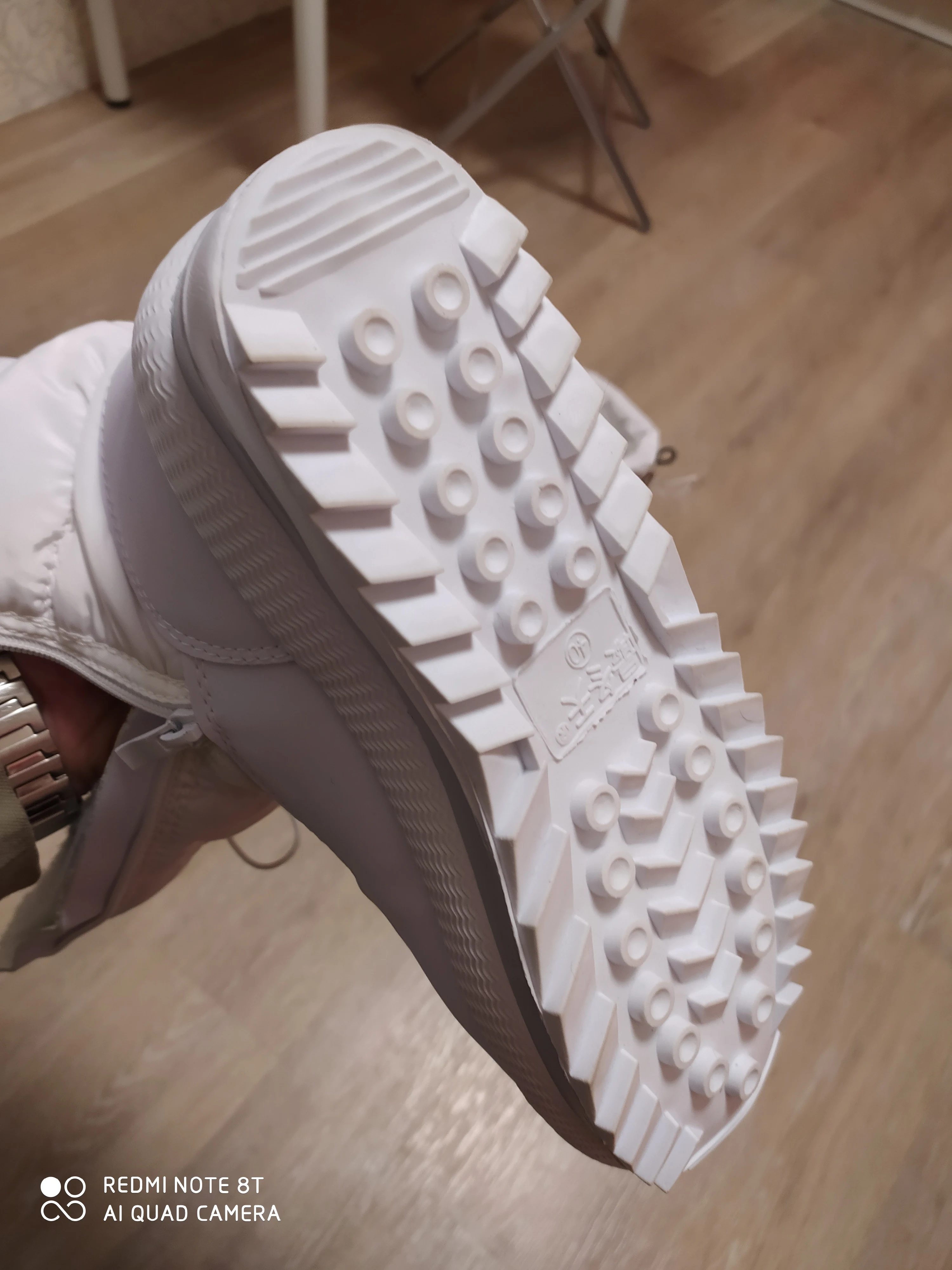 Супер! Очень мягкие, неплохо прошиты без запаха. На свой 37.5 (24.3 см) взяла 39 и отлично! Осталось место для теплого носка. Прям шерстяного. Единственное, на местах прошивка все исполосовали ручкой, но это не критично. Насколько теплые посмотрим, как минус будет. При обычном освящении белые. На улице прям чуть ли не неоном светятся, а та часть, что под замшу сделана становится бежевой. Посмотрим, на сколько хватит)