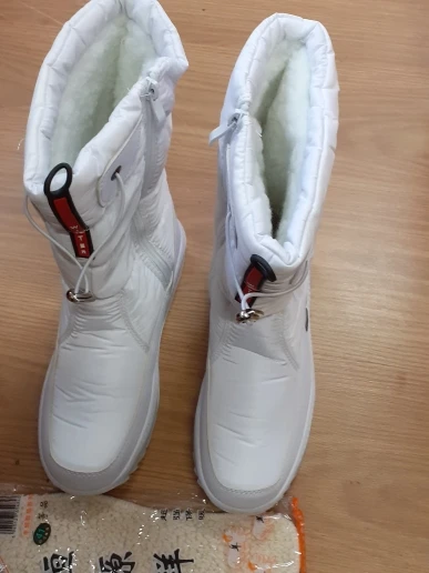 Покупаю такие дутики второй раз! Первые были белые - очень тёплые оказались, но за год активной носки зимой, осенью, весной белый цвет конечно стал не такой белый)) Но к качеству вопросов не было!!! Поэтому решила купить чёрные. Итак 11.11 за 1514₽ с купоном али. Дошли за 2 месяца. Немного меньше белых оказались, но т.к. беру на размер больше, то в целом все отлично! Удивило качество упаковки - внутри надутые пакеты, что сохраняет форму носкам. В подарок стельки. Ещё порадовало отсутствие надписи на заднике, смотрится лучше. Белые брала у другого продавца, для сравнения в конце фото белых