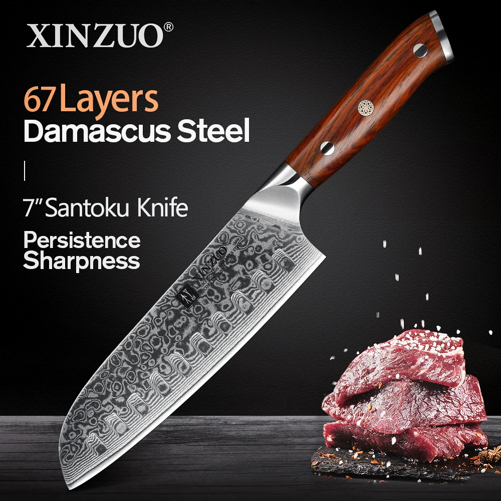 XINZUO 7-дюймовый нож сантоку, китайский дамасский кухонный нож из нержавеющей стали, профессиональные японские поварские ножи с рукояткой из палисандра