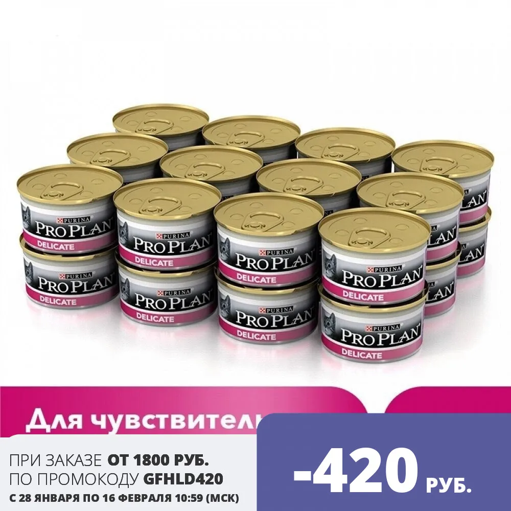 Промопак: Влажный корм Pro Plan для кошек с чувствительным пищеваре...